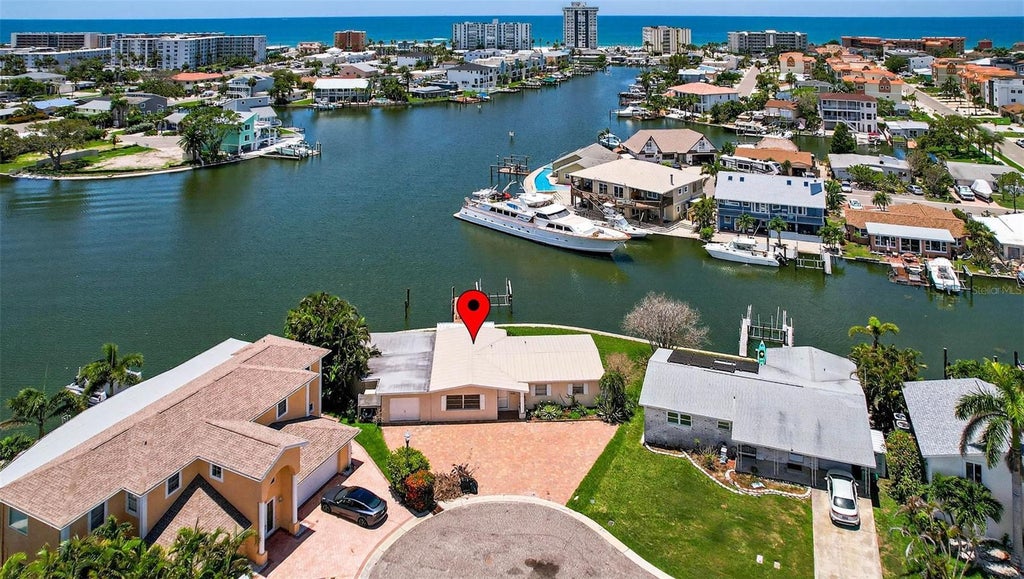 Tremendous opportunity on prime waterfront real estate — priced BELOW FEMA’s lot valuation! This oversized property offers over 122 feet of sailboat-depth water frontage with direct Gulf access via a short boat ride to John’s Pass, making it a highly desirable location for a future luxury new home or remodel potential. From the back patio, enjoy the open water views and beautiful sunsets. The private dock includes a 10,000 lb boat lift and area for an additional slip, enhancing its appeal to boating enthusiasts and high-end coastal buyers. The existing 3-bedroom, 3-bath structure sustained storm damage but has already been remediated, with all compromised materials professionally removed. This is not a substantially damaged home, so renovation is permitted. Whether rehabbing the current structure or building new, the possibilities for strong ROI are significant. Call for a detailed and extremely reasonable rehab estimate or building plans and pricing to construct a new home. Samples of remodel work and model home available to tour. The property is being sold “As-Is” and the seller makes no warranties regarding the home's condition. Buyers to assess the property's suitability for their intended use.